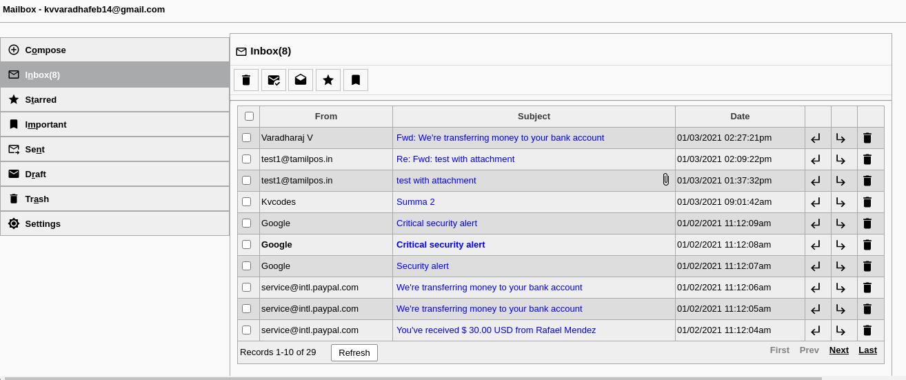 Kvcodes MailBox is an email module, which will act as mail client, to send and receive emails from the FrontAccounting itself. A very lite weight module, to handle with a Rich text editor and helps to bring email functionality effective inside FrontAccounting.