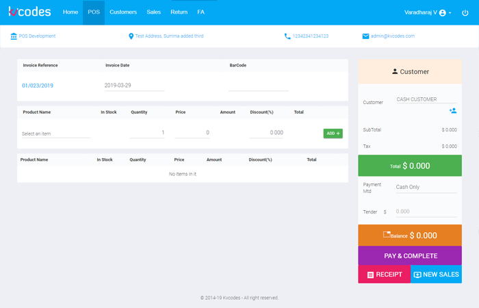http://demo.kvcodes.com/POS/FA. The same login will also work there to make changes in it.